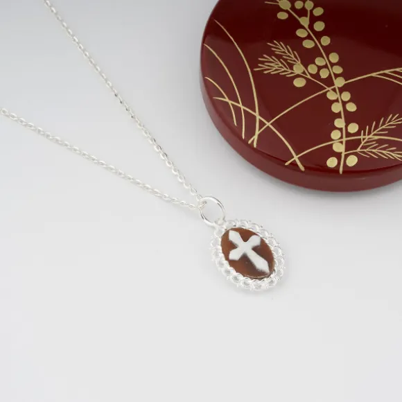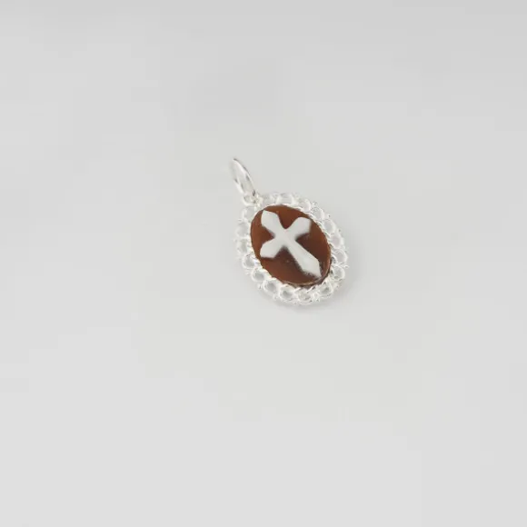 con cameo inciso a mano su conchiglia e argento 925. Dimensione del cammeo 13 mm.